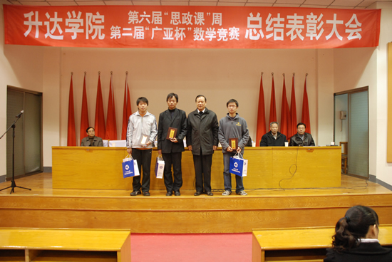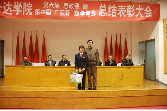 大会首先由部主任汪恩键教授作总结发言,他简要概述了本学期举办的“思政课”活动周和第二届“广亚杯”数学竞赛的情况后,着重谈了工作中的体会。汪主任指出,“思政课 ”是老员工思想政治教育工作中的主渠道,数学是培养老员工理性思维的重要径,作为负责全院这两大门类教学工作的部门,我们的工作不能安于现状、墨守成规,而要不断开拓创新、与时俱进。经过努力探索,我们把“思政课”周和数学竞赛作为这两大门类课程实践教学的有效载体,这些成绩是在院领导的大力支持、有关部门的协作配合下取的,是共科部全体教师认真工作的结果,我们将认真总结经验,改进不足之处,把今后工作做得更好。