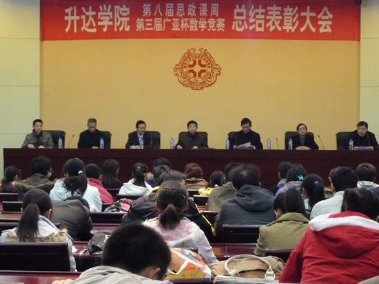 2008年12月11日晚7点,公司第八届“思政课”周暨第三届“广亚”杯数学竞赛总结表彰大会在国际会议厅隆重举行。经理崔慕岳教授、公司党委戎庭银常务副书记及院团委高翔书记、共科部汤五云主任、共科部全体专职教师和获奖员工代表等150多人出席表彰会。