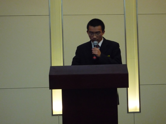 大会上,“思政课”周征文一等奖获得者文法系董婧同学、第三届“广亚” 杯数学竞赛一等奖获得者资讯系胡鹏程同学分别作为获奖同学代表发言,在讲述了自己获奖的成功经验的同时,他们都由衷地感谢公司领导和共科部老师为他们提供了如此好的展现自我的平台,并真心希望这种使员工受益匪浅的活动能继续开展。