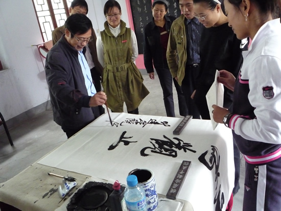 参观过程中,首先是竹林镇接待办的李主任用了近一个小时的时间绘声绘色地给我们介绍了竹林镇改革开放以来的发展历程和竹林近年来的经济发展、精神文明建设以及旅游产业的迅速发展等生动事例。然后,在竹林镇政府明事堂,老师们观看了记录竹林镇发展历程的短片《竹林二十五年》,了解了竹林镇在改革开放大潮引领下由一个名不见经传的小山村到联合国可持续性发展试点镇的伟大变化;了解了竹林镇在科学发展观指导下物质文明、精神文明、生态文明全面协调可持续发展的丰硕成果。随后,老师们还参观了参观了北山景区凤鸣苑、龙腾阁、碑苑等处,在碑苑老师们欣赏了很多党和国家领导人及一些文化名人给竹林满含褒奖的题词,公司共科部主任汤五云教授应邀题词留念并接受了竹林电视台的采访。竹林镇快速发展的经济、优美的环境给老师们留下了深刻的印象。