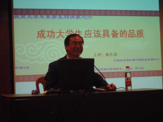10月13日晚,应公司共科部邀请,郑州大学公共管理学院副经理,硕士生导师,河南省委组织部干部教育培训中心培训专家魏长领教授在外语楼一楼报告厅作了题为“成功老员工应该具备的品质”的学术报告。共科部主任汤五云教授、全体思政课教师以及会计系200多名同学参加了报告会。