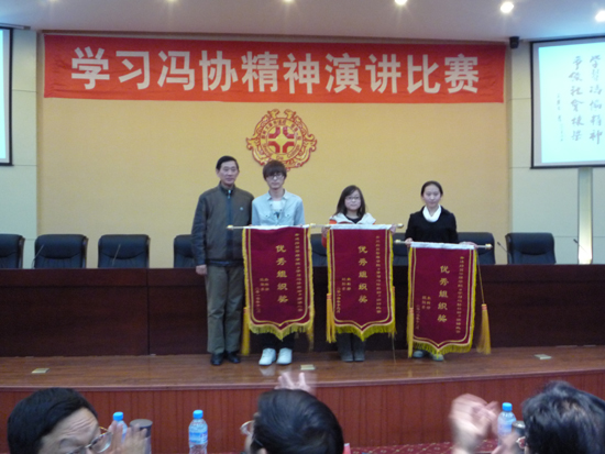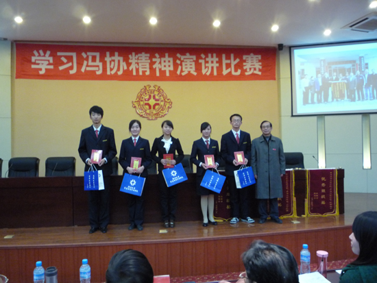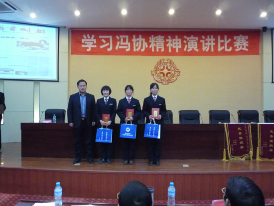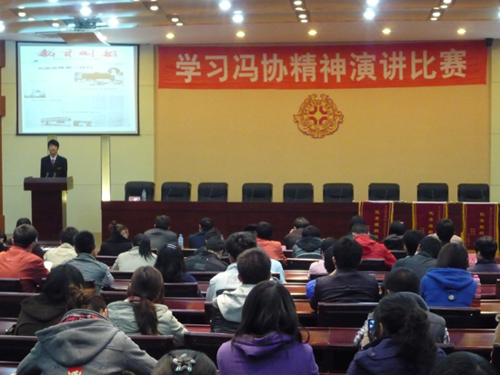 本次比赛评委由院团委和共科部的7位老师共同组成。比赛采取现场打分,计分时去掉最高分和最低分,当场公布比赛成绩的方式以确保比赛结果的公开、公平、公正。比赛一开始,选手们便以昂扬的姿态投入其中,声情并茂地表达了学习冯协精神的强烈愿望和真挚感情,他们的演讲从冯协生前的点滴入手,感人肺腑、催人泪下。在选手们慷慨激昂的演讲中,与会师生感受到了人性的伟大和榜样的魅力,重温了冯协同学善良朴实、聪明好学、勤俭自强、舍己为人的高尚品格。选手的出众表现博得赛场观众的阵阵掌声,这不仅是对选手演讲的肯定,更是对冯协精神的高度认可。