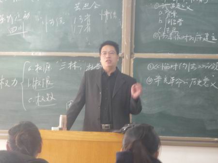 冯老师从武昌起义、南京临时政府的建立、《中华民国临时约法》的颁布和辛亥革命的历史意义等四个方面讲解了辛亥革命的胜利这一重要问题。其中,在讲授武昌起义过程中,冯老师充满激情地给大家重点介绍了那些家境出身优越、受过良好教育的、本来个人生活应该很安逸、但为了国家和人民而抛头颅撒热血的革命党人,如林觉民、喻培伦、方声洞等革命先烈的英勇事迹。冯老师的讲授不仅增长了我们的历史知识,而且也使我们在思想政治上受到了教育和洗礼,达到了预期的教学效果。