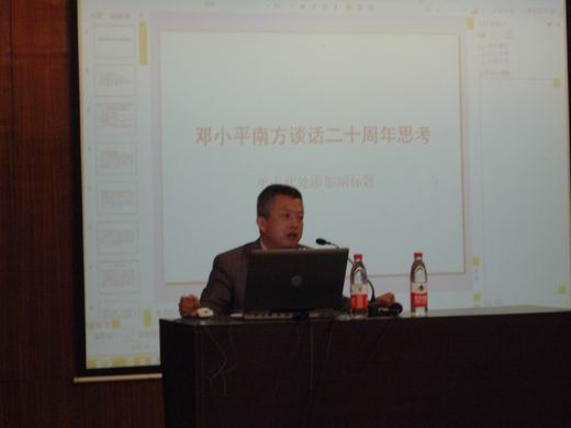 报告中,曹教授从邓小平南方谈话的背景谈起,为我们生动再现了南方谈话的国际背景、国内背景以及当时围绕着改革开放是姓“资”还是姓“社”为中心的思想交锋。其中,曹教授着重为我们解读了“南方谈话”出台的艰辛历程,让我们切身感受到邓小平理论形成之不易。其后,曹教授从南方谈话是对十一届三中全会以来改革开放路线的确认;南方谈话是对经济特区的肯定;改革开放在新时期的命运三个部分为我们解读了“南方谈话”的重要作用和历史意义。曹教授的报告深入浅出,生动详细,全面深刻,使师生体会到改革开放是决定中国命运的关键抉择,面临改革处于攻坚时期的社会现实,重温小平南方谈话非常必要,传承发扬南方谈话精神,才能让我们的思路更加清晰,在改革困惑中辨明方向,从而进一步解放思想,改革开放,实现科学发展,社会和谐。