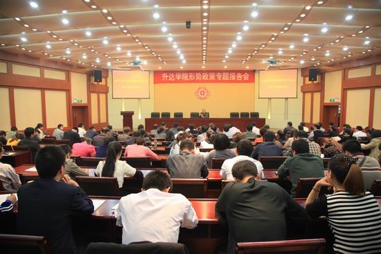 2012年10月11日下午,我部在国际会议厅举办了本学期第一场学术报告会。这场报告会与公司党办和学务处共同承办,主题是中原经济区与十二五规划,报告人是河南省社科院副经理刘道兴研究员。报告会由公司党委常务副书记戎庭银同志主持,各系部和职能部门的主管、书记、副书记、秘书、辅导员和共科部全体思政课老师出席了报告会,经理崔慕岳教授对报告会的举办高度重视,提出了明确的要求并作了具体的指示。