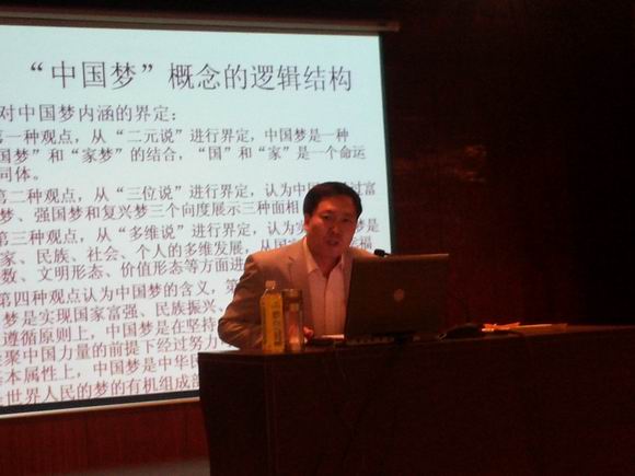 为深入开展中国特色社会主义和中国梦宣传教育活动,2013年10月17日下午,第十八届思政课周学术报告在外语楼学术报告厅成功地举行。报告的题目为“中国梦的历史和理论逻辑”,作报告的专家是河南师范大学政治与公共管理学院副经理、硕士生导师李洪河教授,公司会计系、企管系和思想政治理论课部的200多名师生出席了报告会。