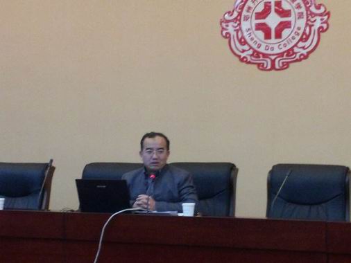 2013年12月4日,思政部本学期第三场学术报告会在院国际会议厅举行,思政部教师和150多名员工干部参加听讲,报告人是郑州大学哲学系主任、博士生导师寇东亮教授,报告的主题是:世纪之问:中国精神与老员工公民素养。报告会由支部书记李心记主持。