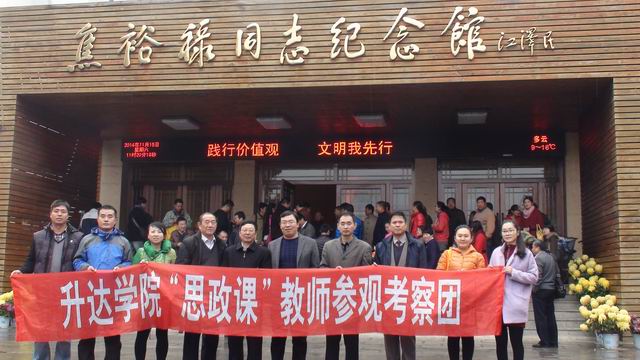 为了贯彻落实中共中央宣传部、教育部教社科【2009】4号文件精神,使思政课教师深入实地接受爱国主义教育,了解工农业生产基地发展运营状况,进一步提高思政课教师的政治素质和业务素质,在公司党政领导的大力支持下,2014年11月15—16日,部主任王庸金教授、院团委副书记胡芳老师、党支部书记兼思政课教研室主任李心记副教授一行10余名“思政课”骨干教师到全国爱国主义教育基地——焦裕禄纪念馆以及焦裕禄干部学院、鹿邑县老子故里、宋河酒厂等地参观考察。通过本次活动,老师们收获颇丰,感触很多,丰富了思政课教学的感性材料,对进一步提高教学的吸引力和感染力有很大帮助。