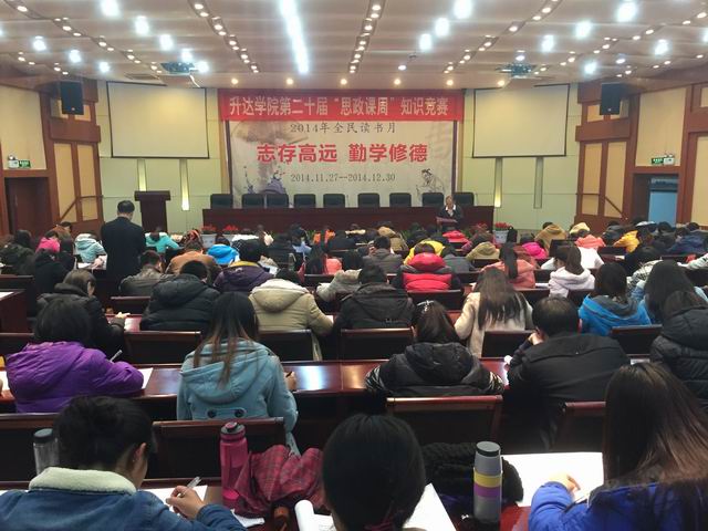 2014年11月27日晚7时,由院团委和思政部共同举办的以“树立法治信仰,弘扬法治精神”为主题的知识竞赛活动在行政楼国际会议厅举行。全院9个系在初赛的基础上各选出15名代表参赛,院MMD协会也选派了4名代表参加了这项活动,思政课教研室主任李心记副教授和刘树林、陈鲁民、石治安、窦峰、苗天宇等老师具体负责命题和赛场的组织工作,部主任王庸金教授到赛场进行了巡视。