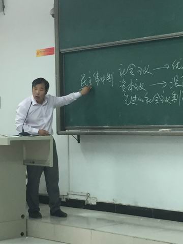 范教授从社会主义国家的含义、概念和类型入手,结合当代中国的实际,简单回顾了社会主义国家的成就及国际共产主义运动的发展历程。随后,范教授以苏东剧变为切入点,详细分析了社会主义运动进入低潮的原因。范教授认为:对社会主义社会基本矛盾及发展规律的错误判断、高度集中的政治体制、对自由资本主义继承与发展的误区、形而上学的历史观等几个方面是国际共产主义运动进入低潮的重要原因。讲课期间,范教授用幽默、诙谐的语言,生动、深刻的案例深深打动了广大师生的心,让人不知不觉地对他的认识和观点产生一种认同感,师生们大都感觉到这既是一堂成功的思想政治课,又是一场妙趣横生的主题演讲,同学们不时报以热烈的掌声。
