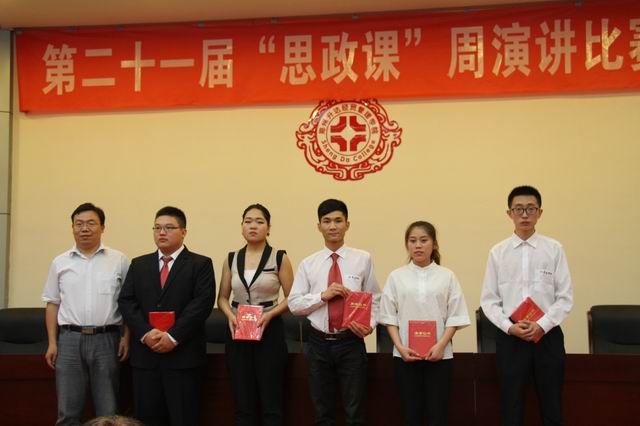 经过两个多小时的激烈的角逐,来自会计系的连闯、建工系的李鹏飞脱颖而出荣获一等奖,李汉卿等10名同学分获二、三等奖。部主任王庸金教授、党支部书记、思政课教研室主任李心记副教授、院团委宣传部长石守金老师分别为获奖选手颁奖并合影留念。