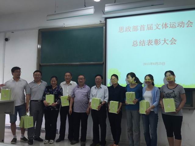 2015年6月25日下午,共科部组织全体专职教师召开首届文体运动会总结表彰大会。表彰会上党支部书记李心记副教授对历时一个多月的竞赛活动作了简要总结,并宣读了各个项目的获奖名单。