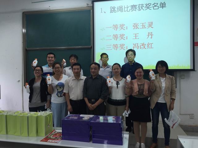 最后,本届运动会的组委会成员为获得各项目一、二、三等奖的老师颁奖并合影留念。表彰会在老师们热烈的掌声中圆满结束。