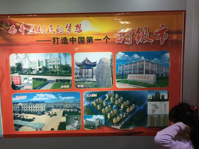 西辛庄村办公楼前,矗立着“当干部就应该能吃亏”的醒目石块,体现着西辛庄村全体干部为人民服务的决心。在村委工作人员的引导下,全体干部参观了西辛庄村图片成就展;随后又实地参观考察了全国首个由村民自筹资金建设的村级医院“民生医院”和村办工厂等。