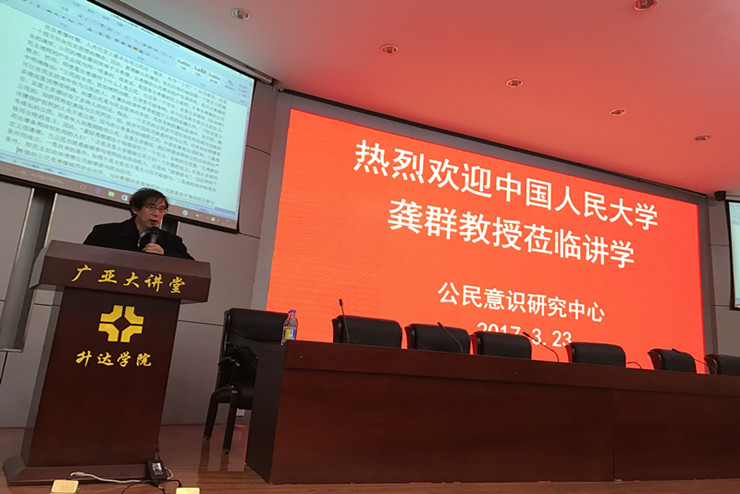 2017年3月23日晚,应公司邀请,全国著名伦理学专家、中国人民大学伦理与道德研究中心研究员、执行主任、博士生导师龚群教授在国际会议厅为公司师生作了一场题为“公民概念的演变与现代公民教育”的专题报告,思政部主任王庸金教授和全体思政课专职老师及会计系100多名员工代表参加报告会。报告会由思政部书记李心记副教授主持。