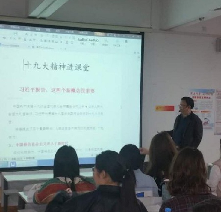 “在员工中开展大讨论,让员工在讨论中学习党的十九大精神,讨论后毛教授再进行总结和讲解,这个做法好!”毛枳鑫教授党的十九大精神进课堂的做法得到了思政部主任朱慈华教授的称赞。果不其然,毛枳鑫教授在宣讲党的十九大精神时还真有一套。10月18日十九大开幕当天,毛教授利用课外时间就把习近平总书记的报告全文用微信发给所教授的员工,随后又陆续把有关党的十九大精神的材料发给大家。课堂上,毛教授利用课前三至五分钟时间介绍党的十九大精神和重点内容,并让员工们通过讨论谈谈自己学习党的十九大精神的感受,充分调动了员工们的积极性,效果非常好!