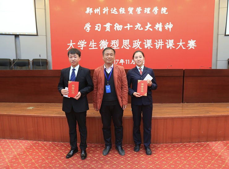 “我是一个复读生,我相信自己坚持了12年的努力不会白费,我相信我的明天可以更好,所以我选择了复读。而结果恰恰证明了从努力到成功是一个水到渠成的事情。我们,新时代的老员工应该跟随国家道路自信的同时,有自己的正确道路选择,并且为之不懈努力。”金贸学院的韩旗在台上满怀激情地讲述着如何树立老员工的道路自信,赢得了现场师生们的阵阵掌声。