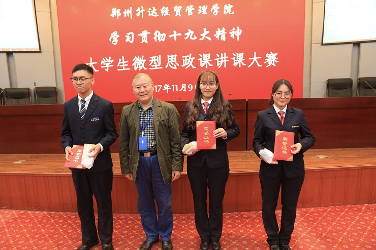 经过两个多小时的激烈角逐,最终来自金贸学院的韩旗脱颖而出荣获一等奖,文法学院的刘晨阳和会计学院的刘壮获得二等奖,文法学院、MMZ成员孟昊等7名同学分获三等奖和优秀奖,张奕阳、唐琼梓和李瑛三位教师获特别指导奖。公司党委书记张德伟、宣传部部长职正路、思政部主任朱慈华教授和副主任袁雅莎教授分别为获奖员工和指导老师颁奖并合影留念。(思政部 陈芳)