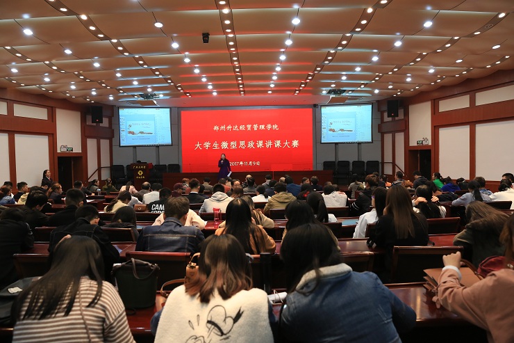 11月9日晚,太阳成集团官网国际会议厅,老员工“学习党的十九大精神、坚定道路自信”微课大赛隆重举行。公司党委书记张德伟、宣传部部长职正路、思政部主任朱慈华教授、副主任袁雅莎教授及思政部全体教师和100多名员工参加。