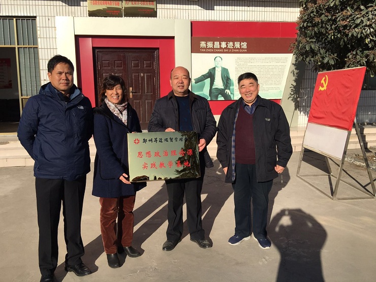 随后,袁雅莎副主任一行赴长葛市坡胡镇水磨河村燕振昌先进事迹展馆,聆听了燕振昌同志的感人事迹。燕振昌在村党组织领导岗位上工作了44年,44年中他廉洁奉公、勤政为民,带领群众艰苦创业,修路办厂、兴学重教,把一个昔日的贫困村建成了长葛第一个亿元村。袁雅莎副主任与水磨河村党委书记郭建营签订了实践教学基地相关协议,并举行了思想政治理论课实践教学基地挂牌仪式。