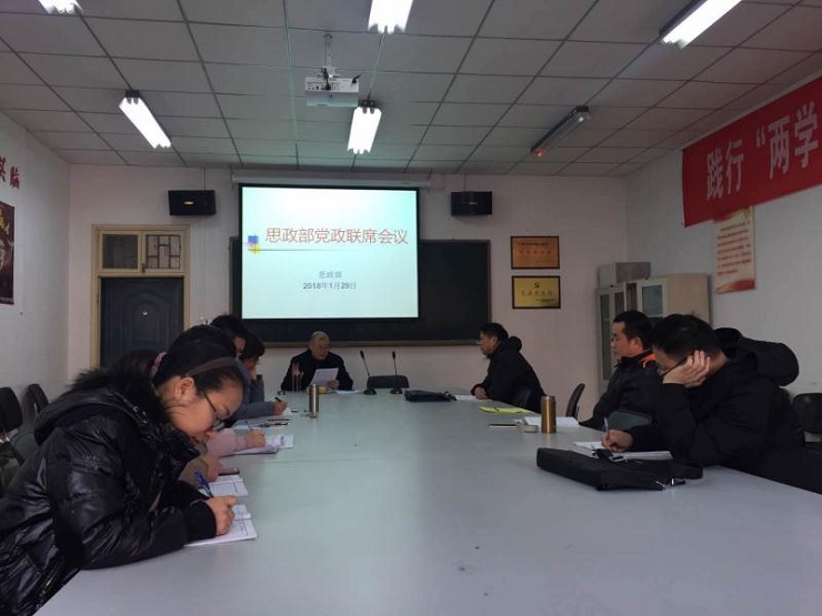 1月29日,在思政部会议室召开了党政联席会议,总结本学期工作和部署下学期工作。会议由朱慈华主任主持,袁雅莎副主任、窦峰书记、教学秘书及各位教研室主任参加了会议。