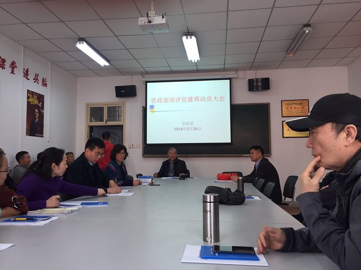3月26日下午,思政部在综合楼211会议室召开全体教职工会议,首先组织大家认真学习了《太阳成集团官网2017-2018学年第二学期评建工作推进计划》(评建2018一号文件),对思政部的迎评促建工作进行再动员。会议由思政部主任朱慈华教授主持,副主任袁雅莎教授、党支部书记窦峰副教授、教学秘书高世伟老师参加会议。