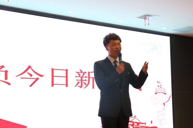 “习总书记说‘知道本来,才能开创未来!’,本来是什么,本来就是指刚刚过去的‘过去’,它鼓舞万物,摩荡世事,它余音绕梁、三日不绝!当代取得的一切辉煌并非遗世独立,是建立在本来这一基础上的必然表现,那么,不知道‘本来’是什么样,我们如何安处于‘现在’?更如何开创更好地未来?!中国翻身崛起的过程是无比艰辛和屈辱的,是用活生生的生命构筑的,那个时代的青年,个个一颗红心、两手准备!没有顾虑、从不妥协!”六号选手李金朕在题为《起航新时代,青年有话说》的演讲中,从本来到未来、从革命年代的青年捐躯赴国难、视死忽如归的牺牲谈到新时代青年的本领和担当。他浑厚的嗓音、流利的表达、生动的案例、富有感染力的表现征服了在座的各位评委老师和现场的同学们,获得了本次大赛的一等奖。