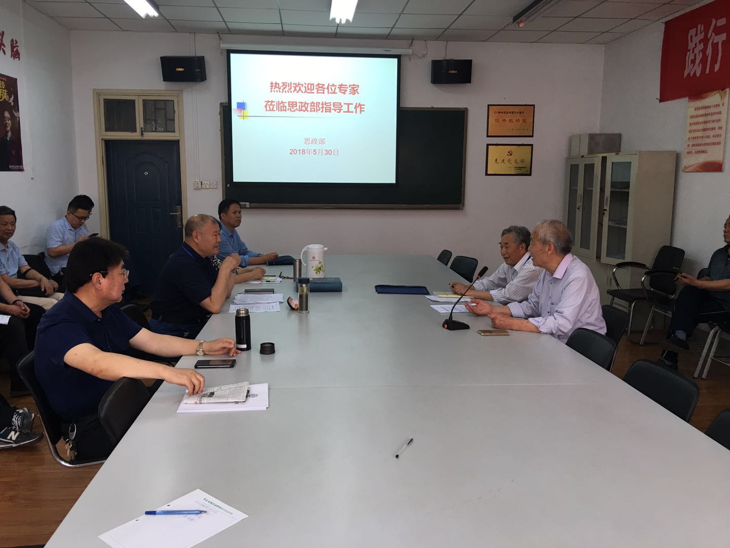 5月30日上午,校教学质量监测与评估中心的黄东教授、董清民教授、及文平教授等三位专家,莅临思政部指导教学工作。思政部主任朱慈华教授、副主任袁雅莎教授、书记窦峰副教授、教学秘书高士伟及各教研室主任、讲授形势与政策课的全体老师参加了座谈。