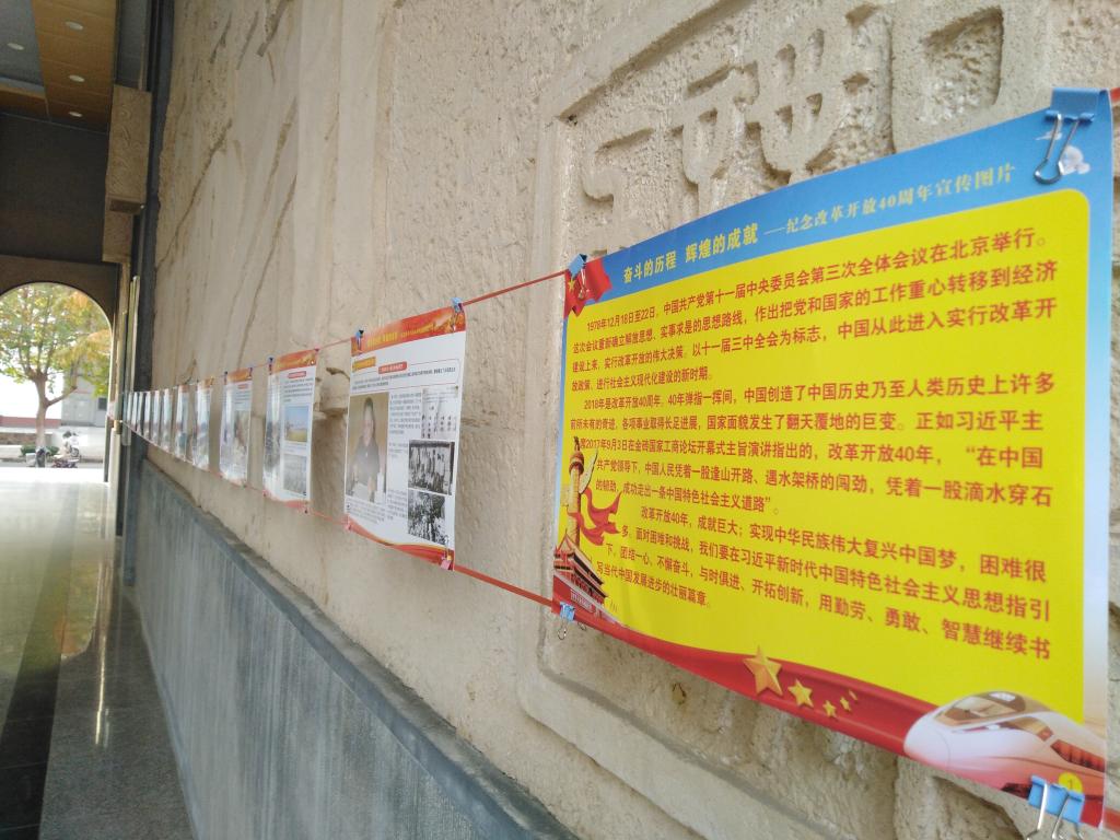 11月12日,由思政部组织的“奋斗的历程 辉煌的成就——庆祝改革开放40周年宣传图片”展在综合楼前隆重开展,一幅幅精美的图片吸引着过往的员工们驻足观看。