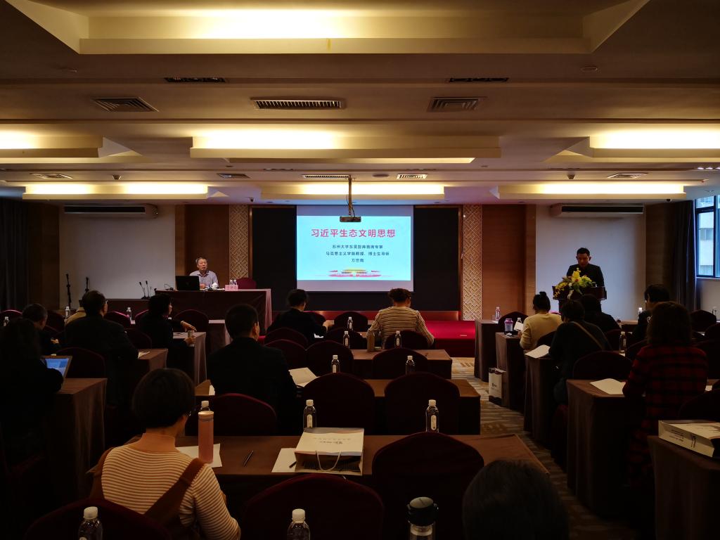这次研讨会以学习贯彻党的十九大精神为宗旨,采取主题报告、理论解读、现场互动等方式就习近平新时代中国特色社会主义思想进行深入研讨。中国社科院侯为民研究员做了《习近平民生建设思想与社会治理理论创新》主题报告,苏州大学方世南教授做了《习近平生态文明思想》主题报告,西南财经大学韩源教授做了《新时代中国特色社会主义文化建设的几个重大问题》主题报告等,参会的专家学者就习近平新时代中国特色社会主义思想展开了深入广泛的交流研讨。