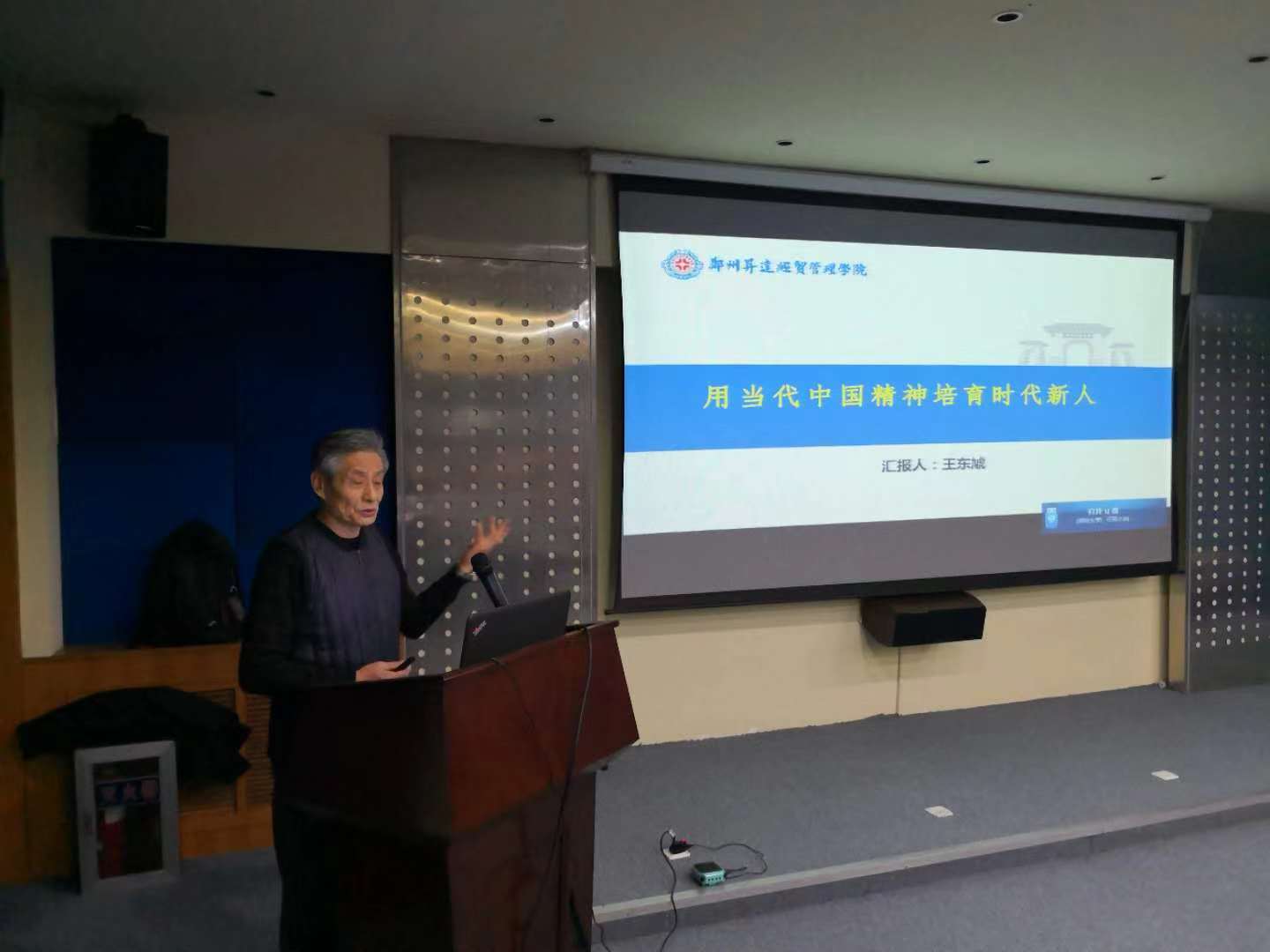 王东虓教授的报告紧紧围绕“用当代中国精神培育时代新人”这一主题,从理解当代中国精神的集中体现、培养担当民族复兴大任时代新人之格的思考以及如何培养担当民族复兴大任的时代新人三个方面进行了论述,报告会主题鲜明、内容丰富、形象生动,对明大德、守公德、严私德,实践行社会主义核心价值观,使与会者受到了教育,洗涤了心灵,努力培育和争当担负民族复兴大任时代新人,为建设社会主义现代化强国做出贡献。(思政部 杨迪/文图)