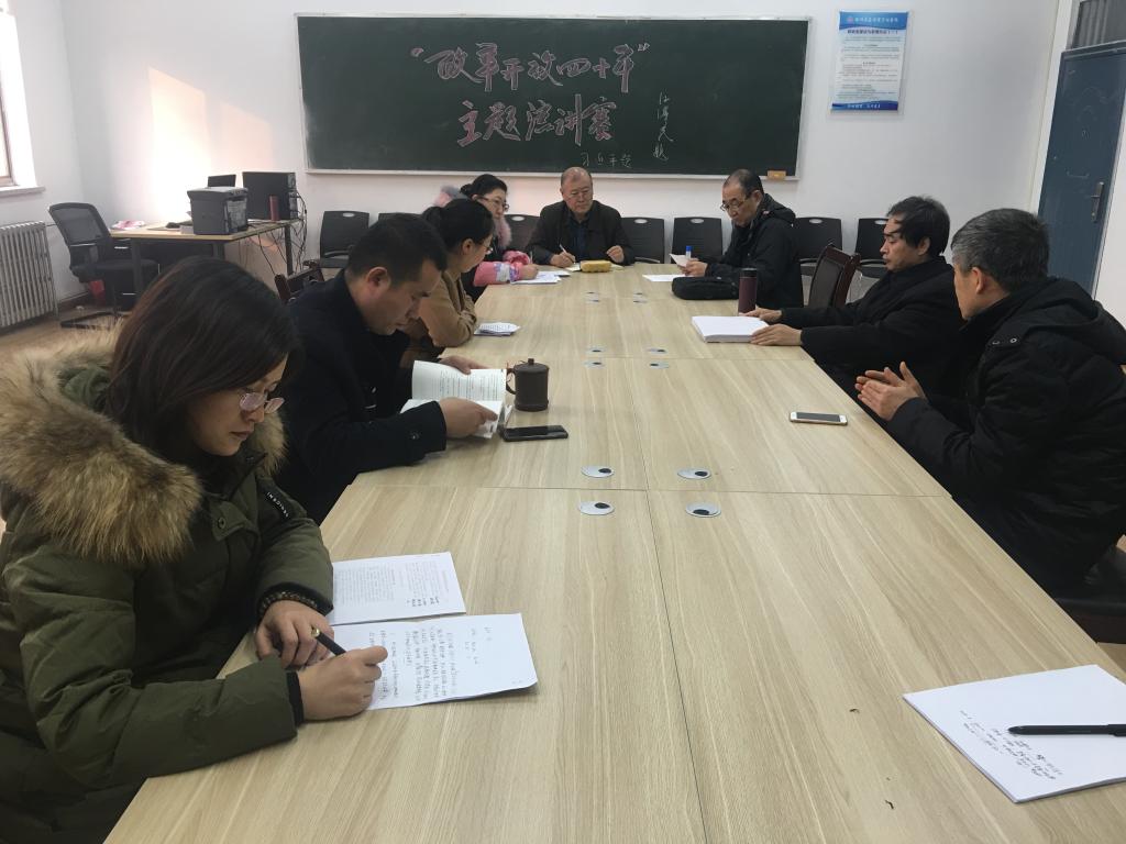 12月20日下午,在综合楼211会议室,思政部召开了推进习近平新时代中国特色社会主义思想“三进入”交流研讨活动。会议由思政部主任朱慈华教授主持,直属党支部书记窦峰副教授、教学秘书晏玲玲和全体思政课教师参加了交流研讨活动。