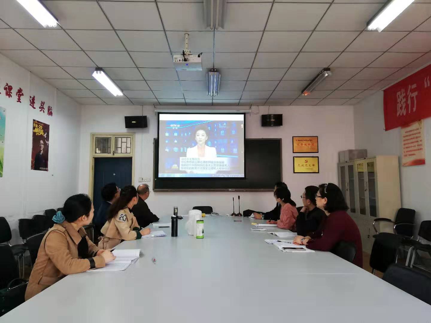 在会议上,朱慈华主任先组织大家认真学习了习近平总书记的重要讲话,观看了央视新闻报道,并对领会贯彻和落实习近平总书记讲话精神提出了具体要求。他讲到,习近平总书记从党和国家事业发展的全局出发,深刻阐述了办好思政课的重大意义,充分肯定了思政课教师的地位作用,明确提出了推动思政课改革创新的重大要求,为我们推进思政课建设指明了前进方向。我们要坚决贯彻落实好习近平总书记重要讲话精神,坚持立德树人方向,努力把思政课办得越来越好,为培养担当民族复兴大任的时代新人做出我们的贡献。