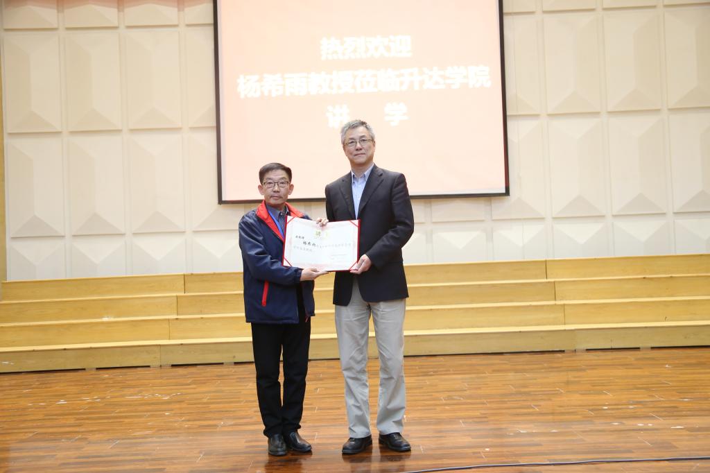 报告开始前,常务副董事长崔慕岳教授为杨希雨教授颁发公司客座教授证书。