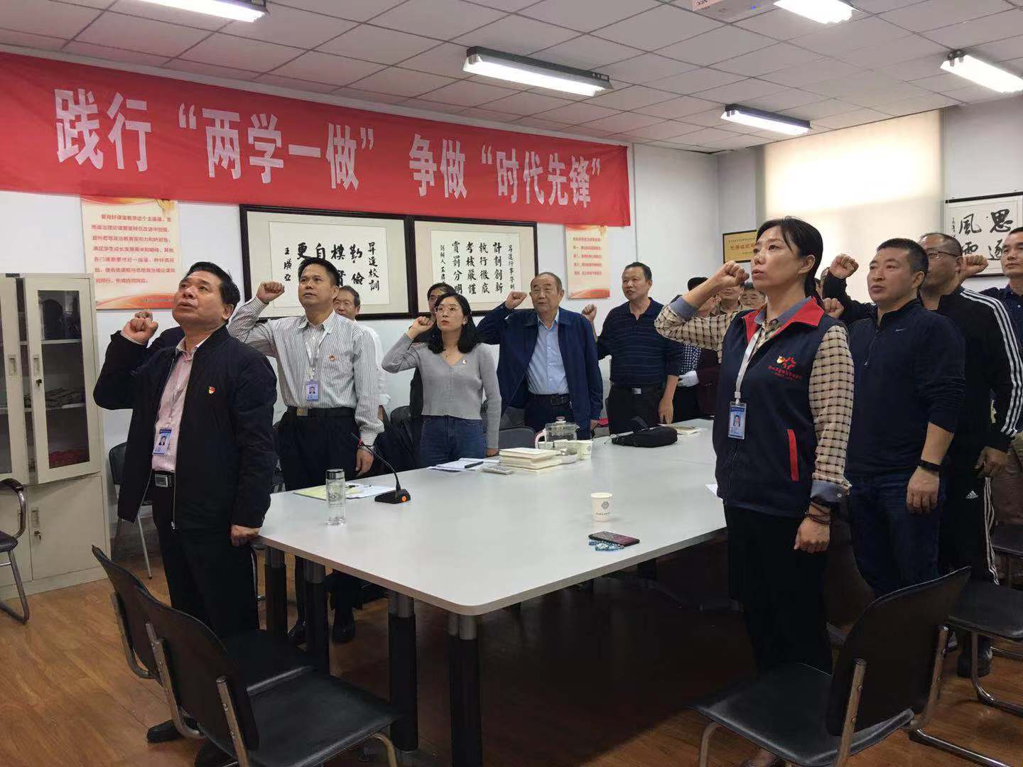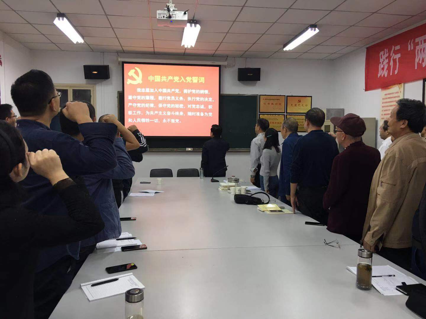 “我志愿加入中国共产党,拥护党的纲领,遵守党的章程……”全体人员在窦峰书记的带领下一起重温入党誓词。