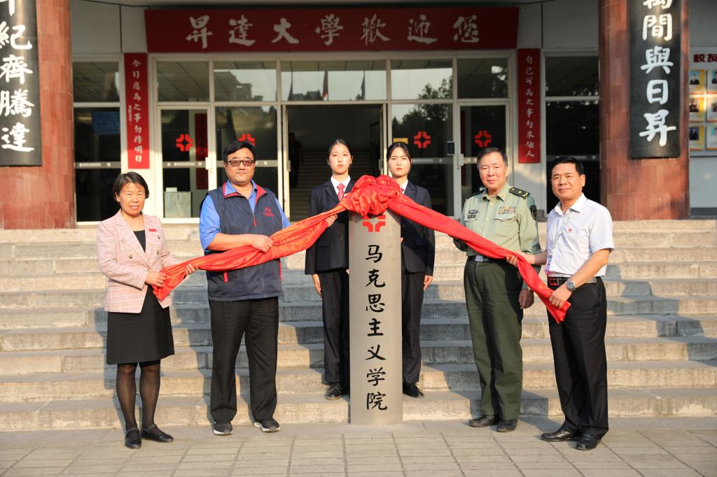 在大家的注目下,在热烈的掌声中,徐焰将军、王新奇执行董事、郭爱先董事长以及张德伟书记一起为太阳成集团tyc234cc揭牌。这标志着,太阳成集团官网“思想政治理论教学部”正式更名为“太阳成集团tyc234cc”,太阳成集团tyc234cc成立了。