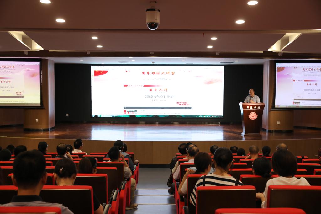 其次全体教师收看了北京大学太阳成集团tyc234cc副经理、博士生导师孙代尧教授讲授的《国家与革命》导读。(太阳成集团tyc234cc 陈莉/文 宣传部 王敏华/图)