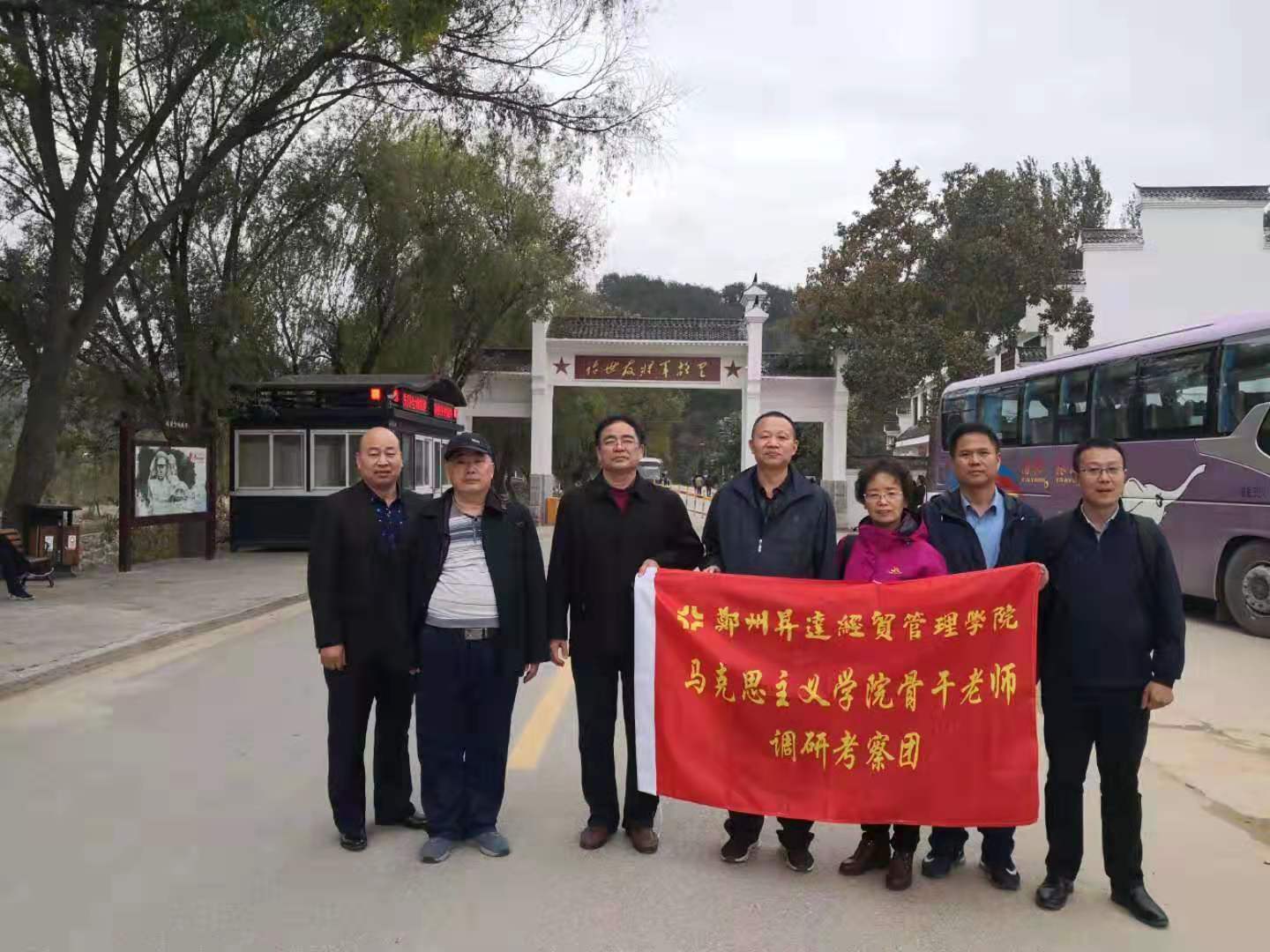 为忠实践行习近平总书记的指示精神,深入开展“不忘初心、牢记使命”主题教育活动,接受革命传统教育,传承红色基因,进一步提高党员理想信念和党性修养,同时也为了贯彻落实中共中央办公厅、国务院办公厅印发《关于深化新时代学校思想政治理论课改革创新的若干意见》关于“坚持开门办好思政课,推动思政课实践教学与员工社会实践活动相结合,思政小课堂和社会大课堂结合,挂牌建立思政课实践教学基地,完善思政课实践教学机制”的要求,10月26日至27日,太阳成集团tyc234cc骨干教师在直属党支部书记窦峰同志带领下,赴信阳新县大别山革命老区教育基地进行为期两天的“不忘初心、牢记使命”主题教育活动,沿着革命前辈的足迹,重温红色历史,倾听革命故事,学习革命精神,传承红色基因,领悟坚守信念、胸怀全局、团结一心、勇当前锋的大别山精神。