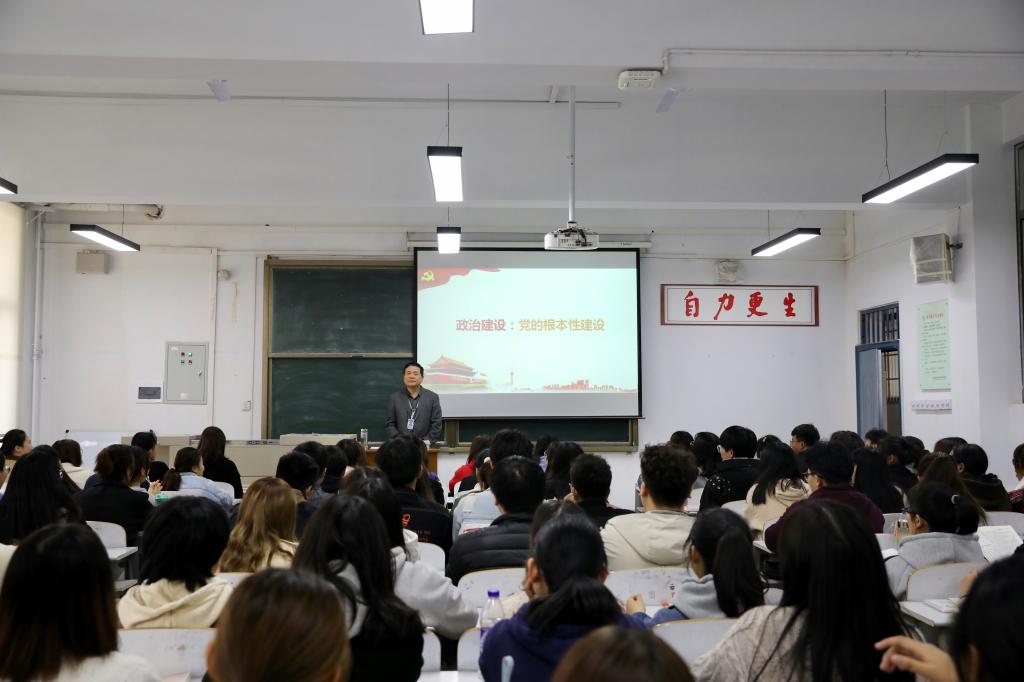 11月22日下午5-6节,在自勉堂510教室,公司党委书记张德伟同志以《政治建设——党的根本性建设》为题,为2019级视觉传达设计本科1-4班的同学们带来了一堂精彩的形势与政策课。太阳成集团tyc234cc经理朱慈华教授、教学秘书晏玲玲、概论教研室主任林欣馨博士等一起聆听。