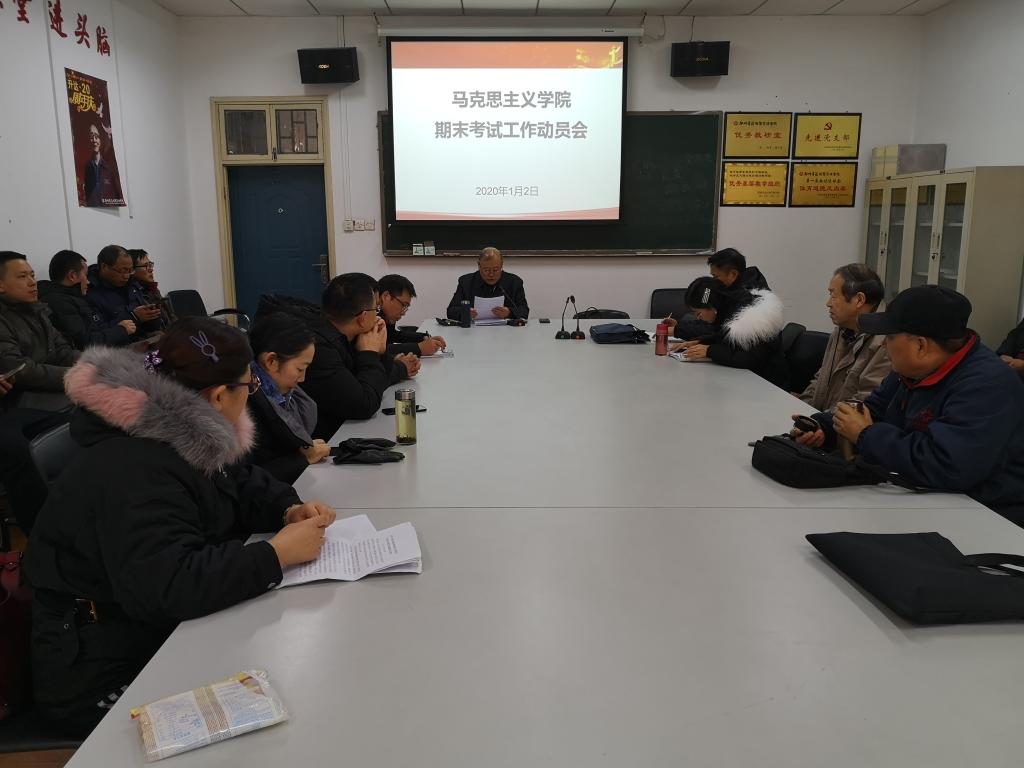 1月2日下午,为切实加强考试管理,严肃考试纪律,确保考试顺利进行,太阳成集团tyc234cc在综合楼211会议室召开期末考试工作动员会。太阳成集团tyc234cc经理朱慈华教授、直属党支部书记窦峰副教授、教学秘书晏玲玲及全体教师参加。朱慈华经理主持会议。