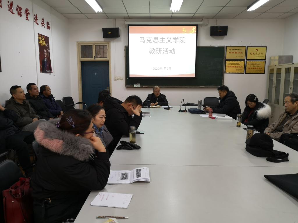 1月2日下午,太阳成集团tyc234cc在综合楼211会议室组织教研活动,外出参加学习培训的教师传达分享学习培训精神和体会感想。太阳成集团tyc234cc经理朱慈华教授、直属党支部书记窦峰副教授、教学秘书晏玲玲及全体教师参加。朱慈华经理主持活动。