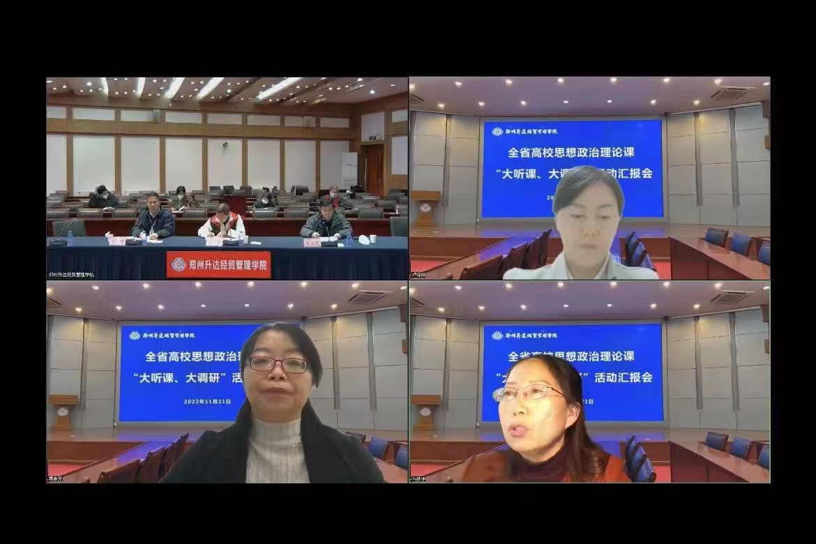 为深入贯彻习近平总书记在中国人民大学考察时的重要讲话精神,认真落实教育部近期工作推进会的相关部署,贯彻落实近期省委常委会会议精神和省委宣传部等三部门相关文件精神,11月21日,由新乡医学院马院经理戎华刚为组长的全省思政课秋季学期“大听课”“大调研”第十四组,通过云端对公司思想政治理论课建设情况进行指导。公司党委书记雷霆、副董事长吴益民、马院经理王宪政、马公司党总支书记窦峰及思政课教师代表参加汇报会。