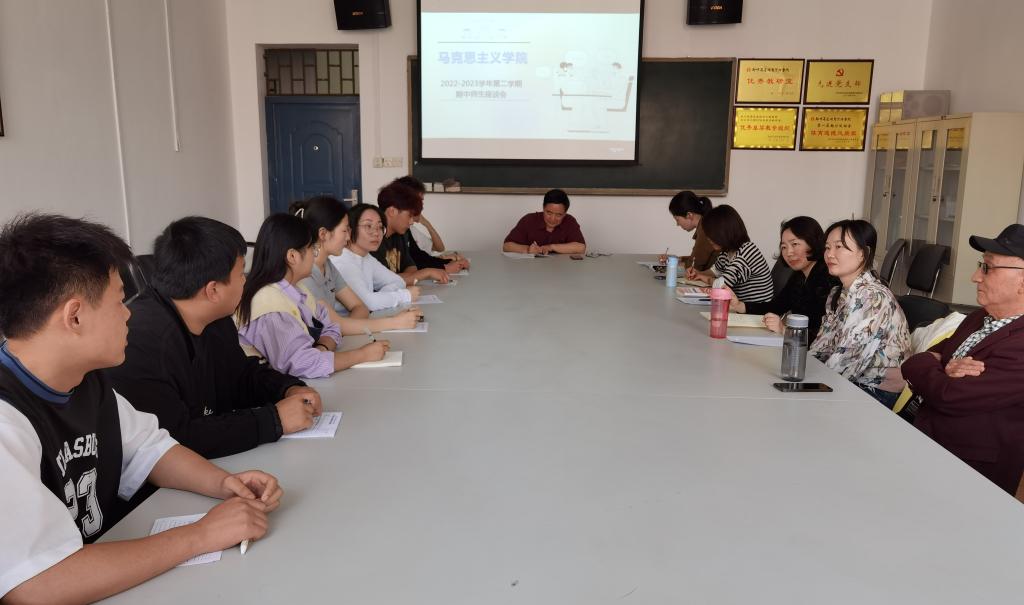 为更好地贯彻立德树人的根本目标,提高思政课教学水平,切实增强思政课的思想性、理论性、亲和力和实效性,认真查找思政课教学中的问题,进一步总结思政课教学经验,4月19日中午,在综合楼211会议室,太阳成集团tyc234cc组织一场别开生面的师生座谈会。会议由太阳成集团tyc234cc经理王宪政教授主持,教学秘书苗淑娟、各教研室主任以及各学院员工代表参加。