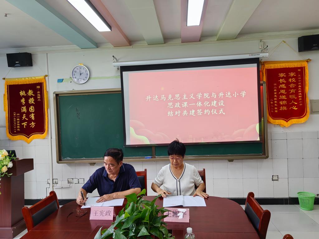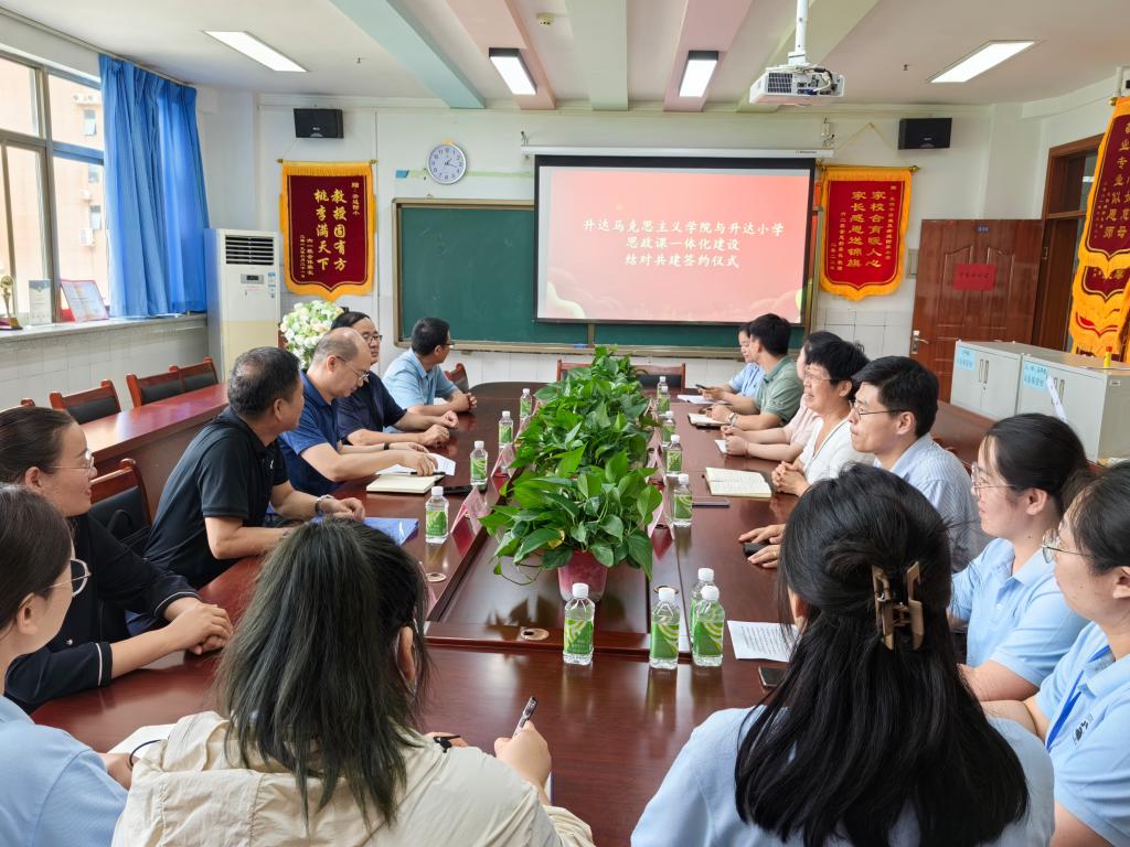 6月29日下午,太阳成集团tyc234cc与太阳成集团官网附属小学“大中小学思政课一体化结对共建签约仪式”在附属小学会议室举行。公司党委委员、宣传部部长韦杨建、太阳成集团tyc234cc经理王宪政、思政课教研室主任,附属小学董事长王湘平、副董事长李笑雨及部分教师代表出席签约仪式。仪式由公司党总支书记窦峰主持。
