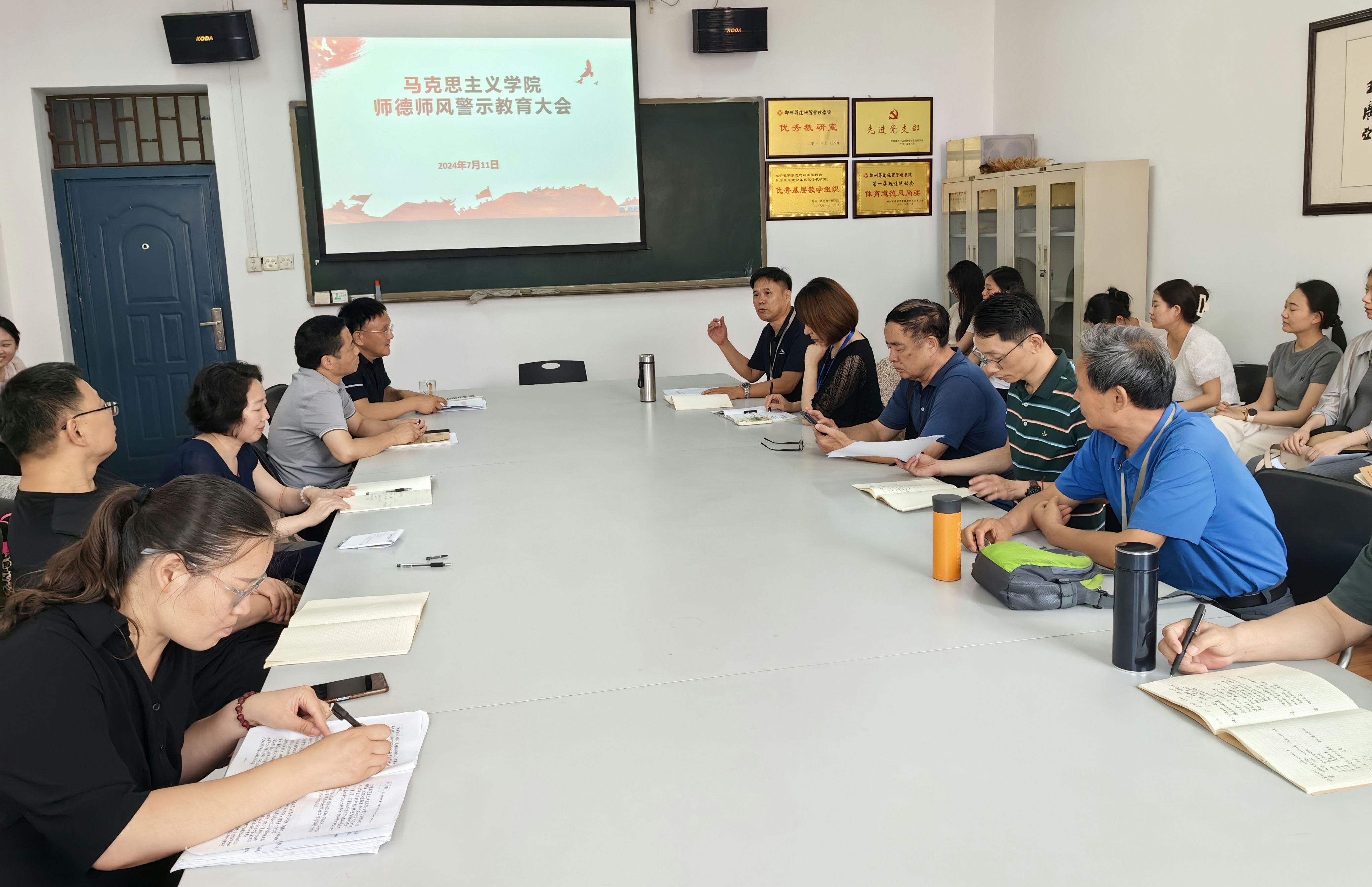 7月11日下午,太阳成集团tyc234cc在综合楼211会议室召开师德师风警示教育大会。经理程明欣、党委书记窦峰、副经理何涛、教学秘书苗淑娟以及全体教师参加。