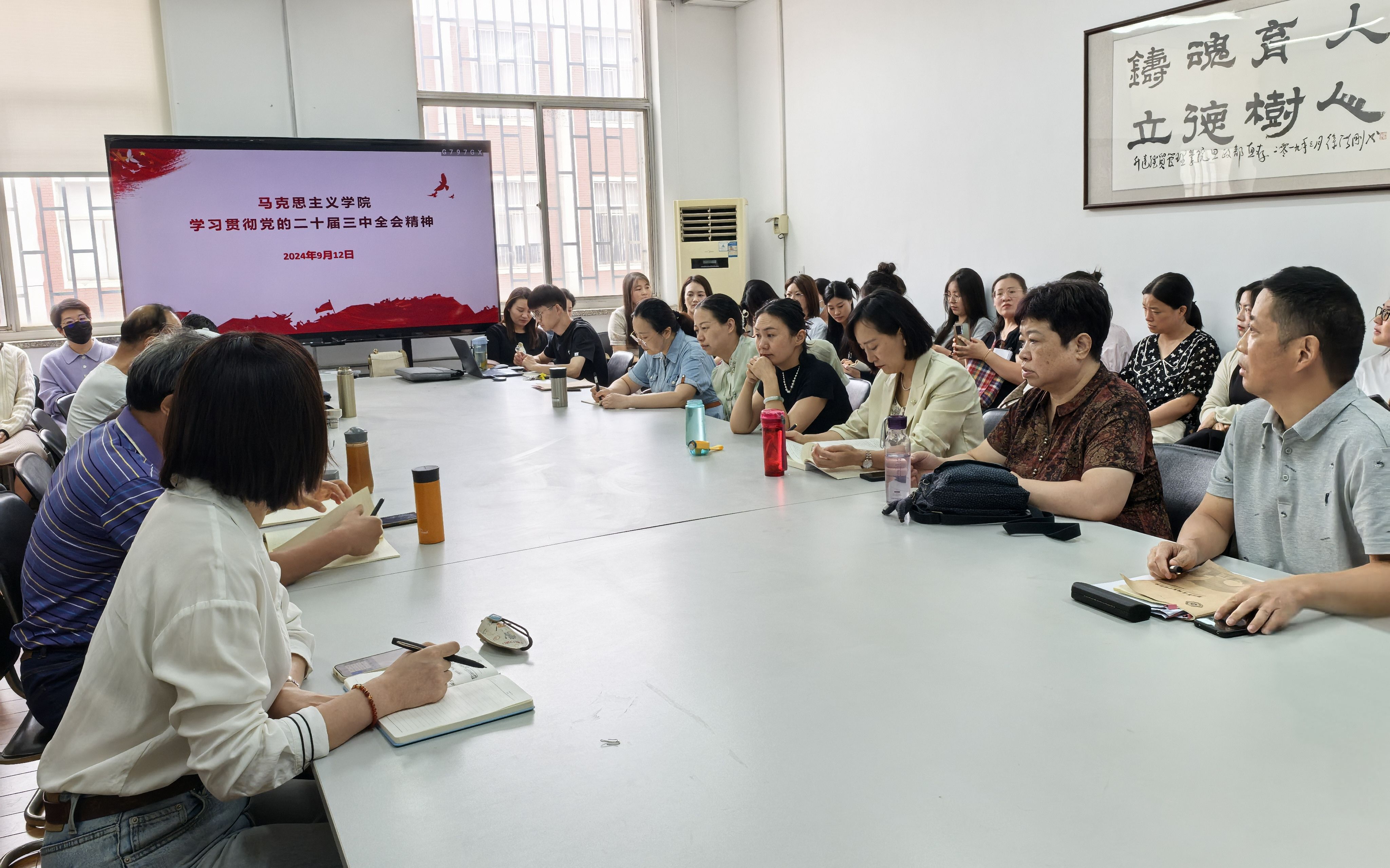 9月12日,太阳成集团tyc234cc在综合楼211室召开学习贯彻党的二十届三中全会精神研讨会,副经理何涛、教学秘书苗淑娟以及全体教师参加会议。会议由副经理何涛主持。