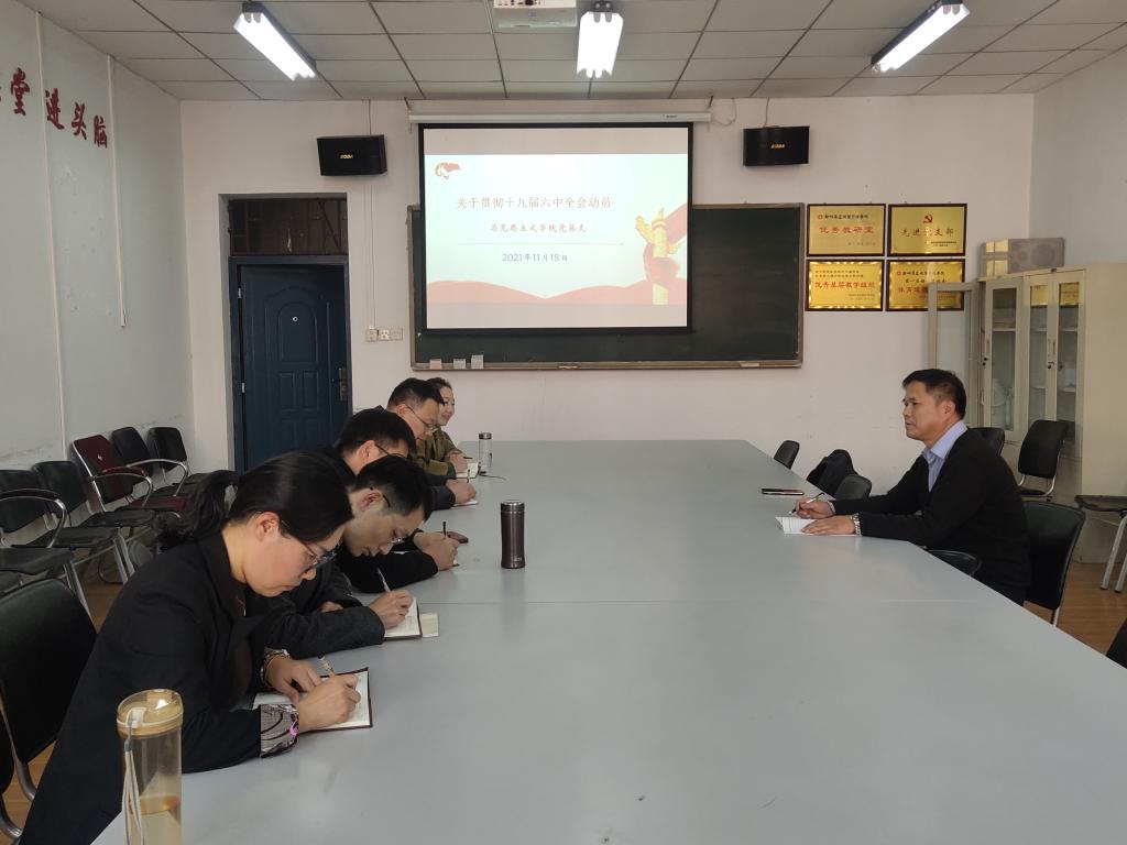 会上窦峰书记带领全体支部书记学习了《中国共产党第十九届中央委员会第六次全体会议公报》,认真领悟十九届六中全会精神。窦书记强调:“十九届六中全会召开于建党百年之际,这次会议对于实现中华民族的伟大复兴具有极其重要的意义,我们要认真学习领悟习近平总书记的讲话精神。”